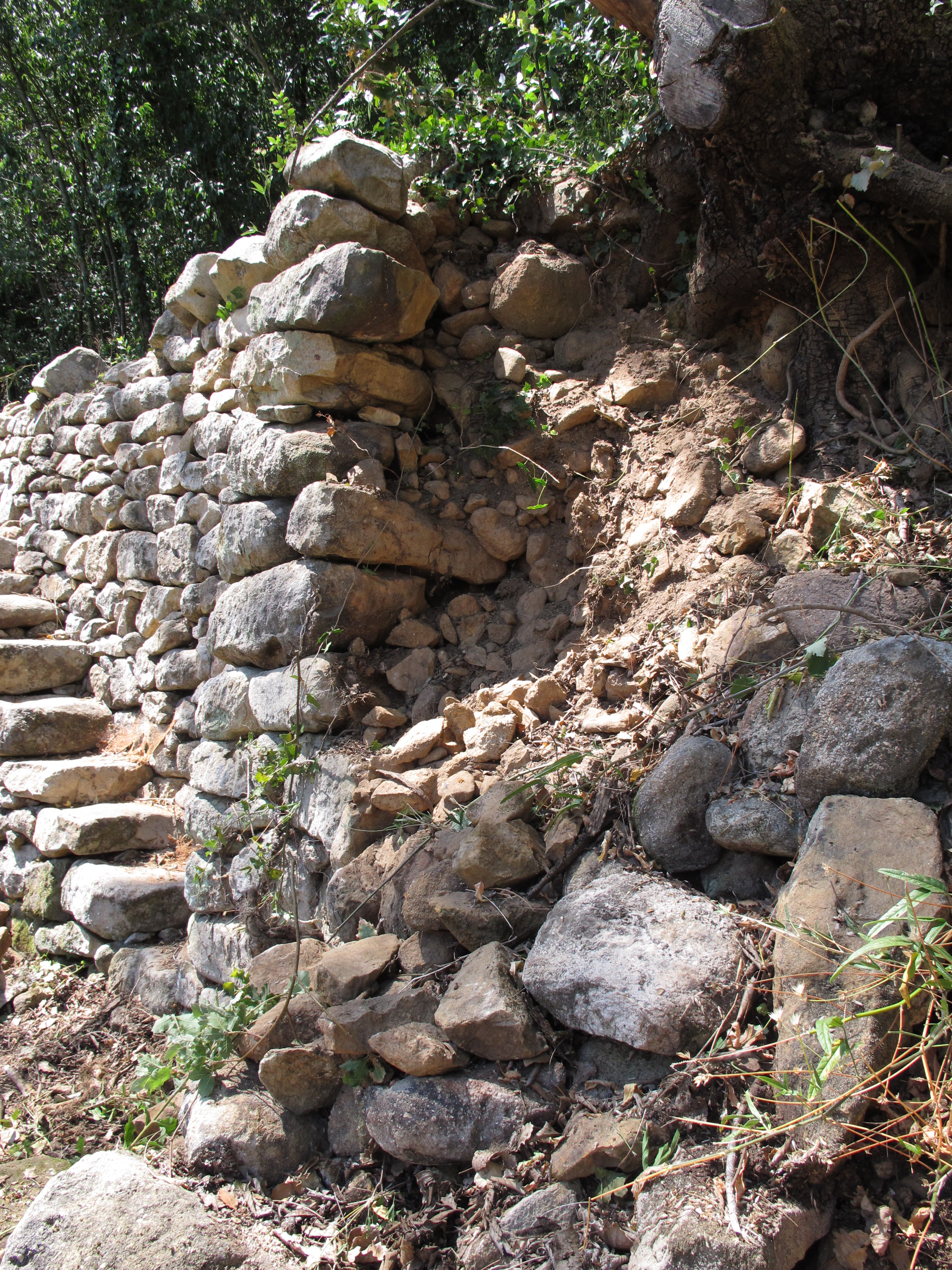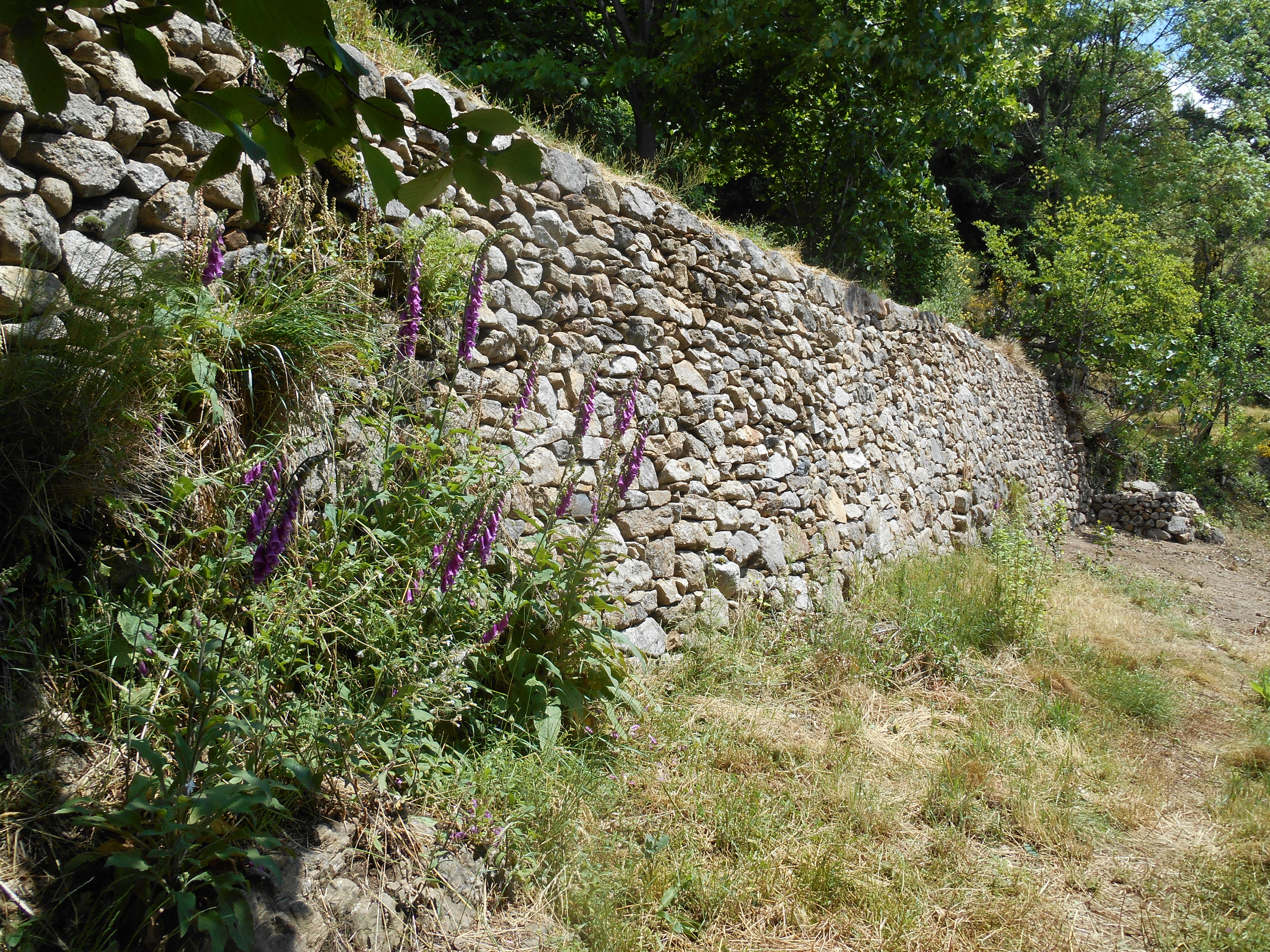 Les aménagements datent certainement du XIXe siècle, ils racontent un paysage de pente, d’autres nécessités, un autre cadre de vie, d’autres gens, une société paysanne vivant en semi-autarcie. Chaque mur est une infime partie d’un tout et s’intègre dans un coteau en friche mais encore entièrement structuré par la pierre sèche. Aucune construction moderne, de la pierre, de l’eau, une végétation luxuriante ayant remplacé les plantations humaines.