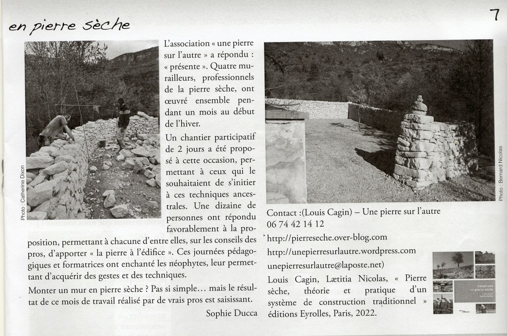 Nous remercions Sophie Ducca et Catherine Larue-Dixon pour ce bel article dans le numéro de mars du journal de la vallée Vivre au Jabron.