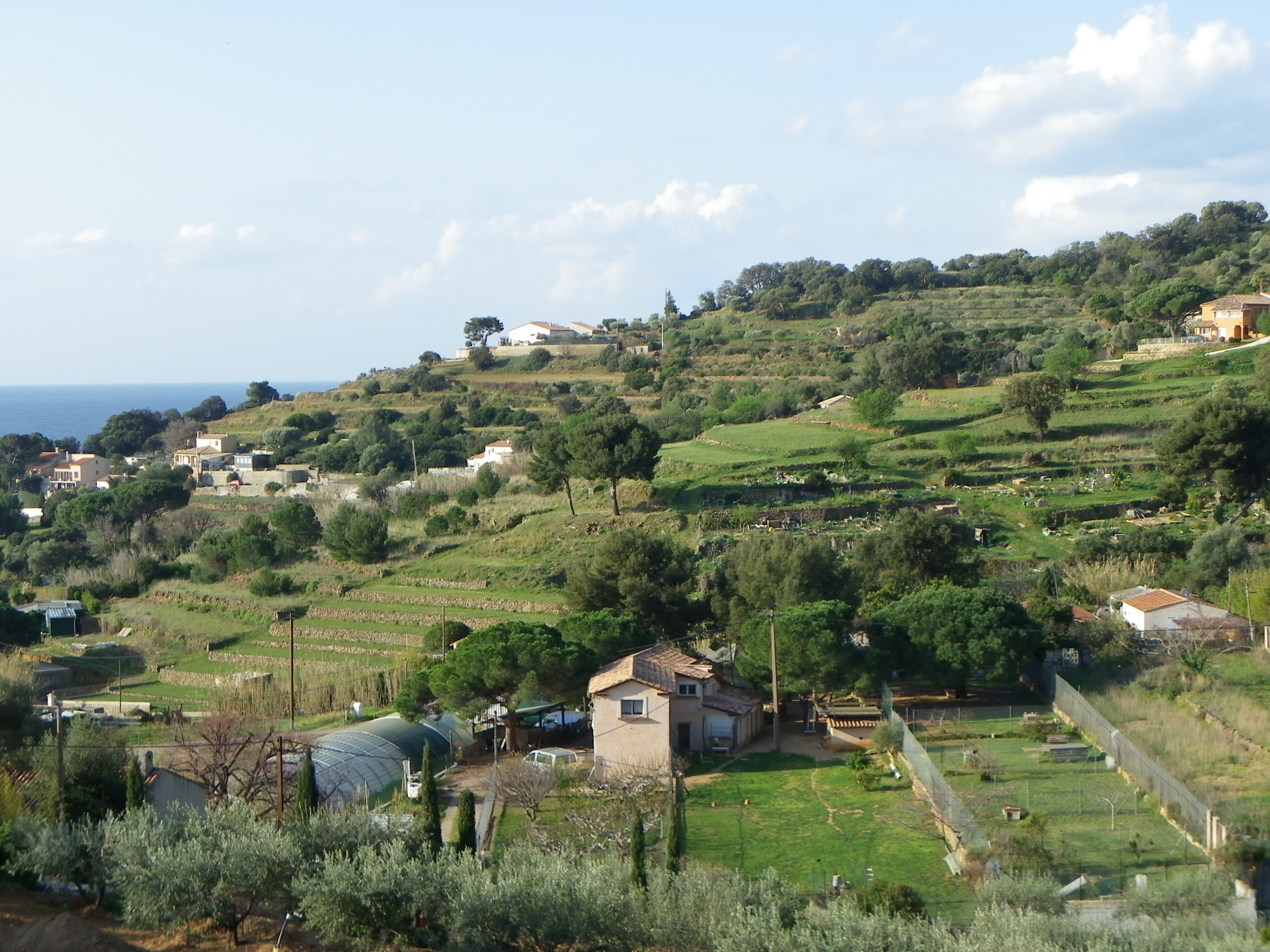 Nous intervenons depuis plusieurs années pour l’association l’instant partagé qui met à la disposition des villageois des espaces de vergers et de jardins partagés. Nous y restaurons des terrasses de culture, face à la mer.